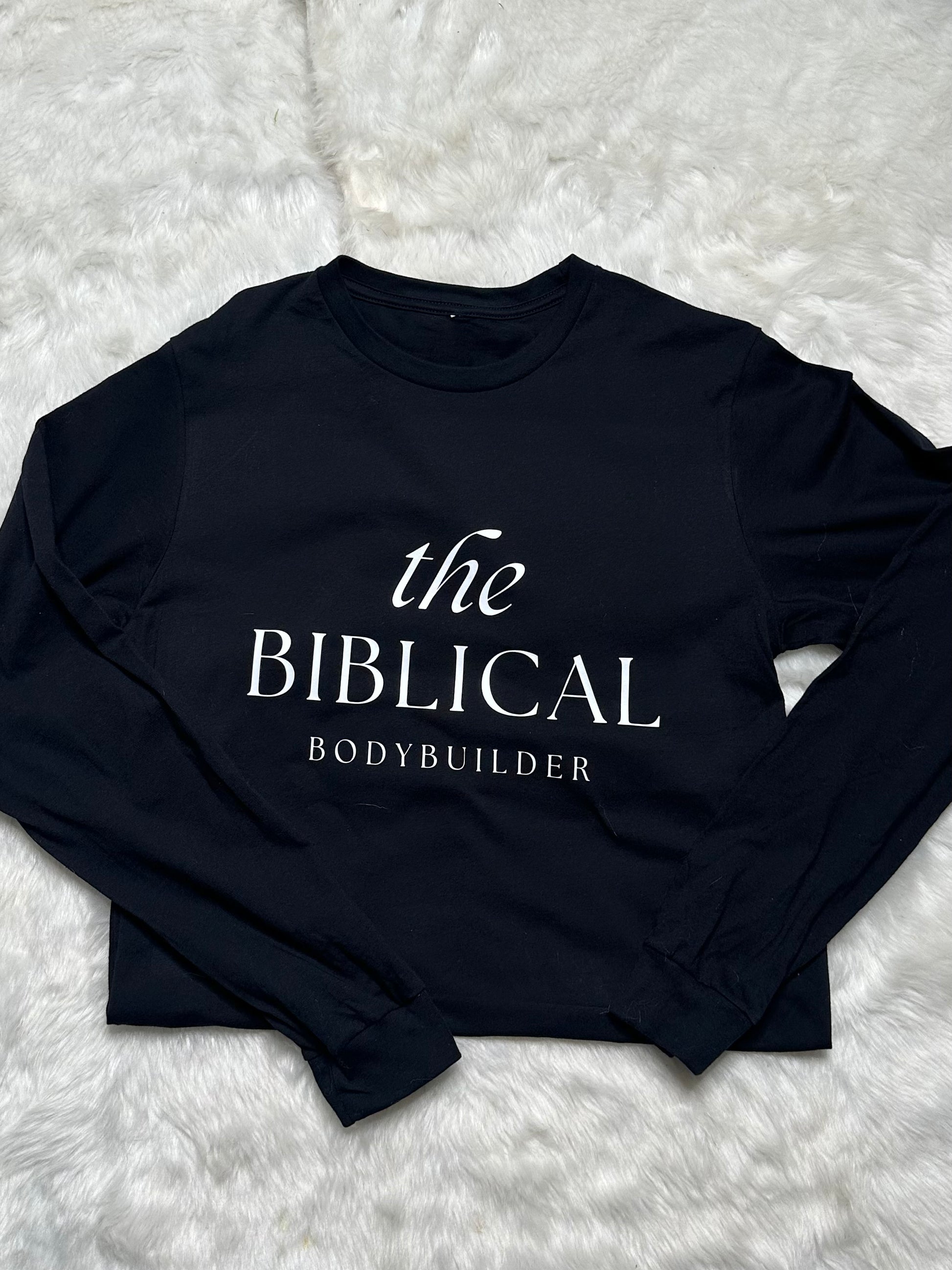 The Biblical Bodybuilder long-sleeve (your new favorite pump cover) is here now in the warmth you need for winter training!